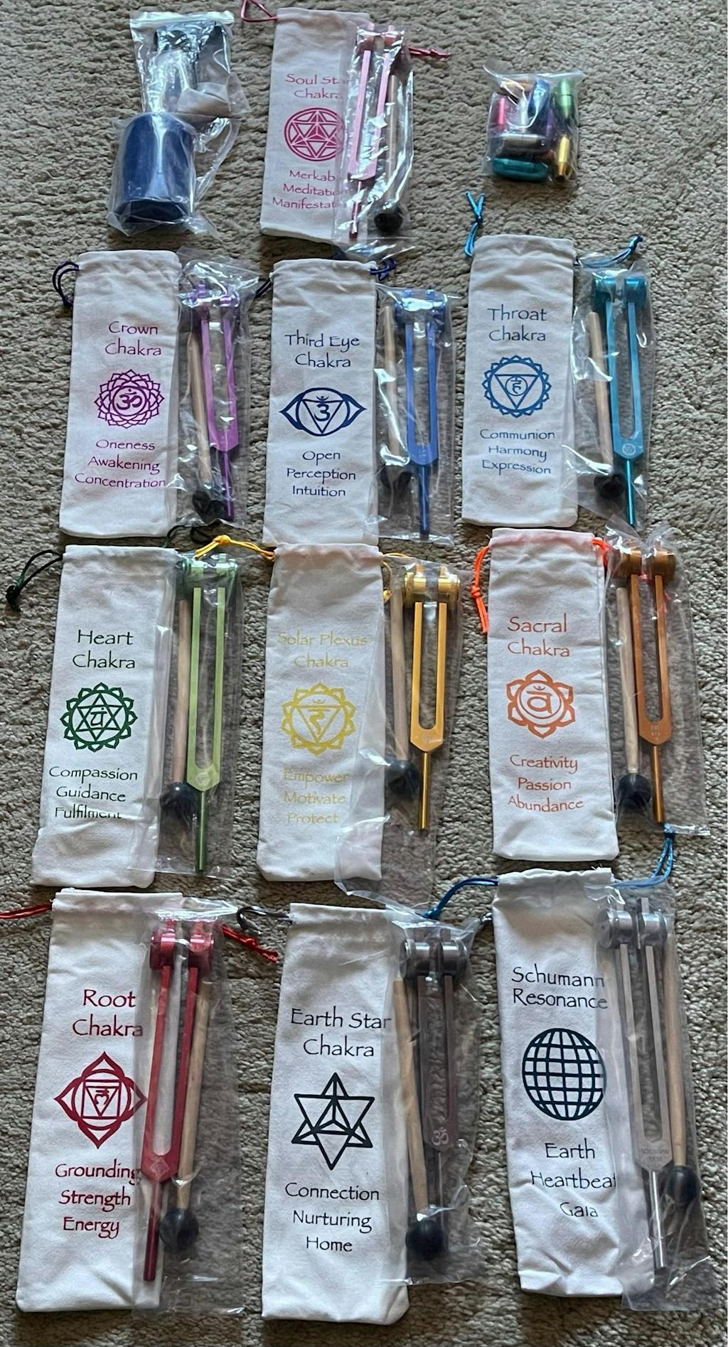 Love my new tuning forks! Beautiful! I appreciate the bags they each come in with the chakra symbols and descriptions. Cannot wait to use them!